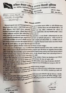 कोभिट भाईरसको न्यूनिकरण नहुदा सम्म संस्थागत तथा सामुदायिक विल्द्यालयहरु शुचारु गर्न नहुने भन्दै अनेरास्ववियू नवलपरासीले स्थानिय सरकारलाई ध्यानाकर्षण पत्र बुझाएको छ । अनेरास्ववियू नवलपरासीका जिल्ला संयोजक शुसान्त घिमिरे र सह संयोजक विशाल गिरीले संयुक्त रुपमा हस्ताक्षरगरी ७ बुधें सुझाव सहित स्थानिय सरकारलाई ध्यानाकर्षण पत्र बुझाईएको छ ।