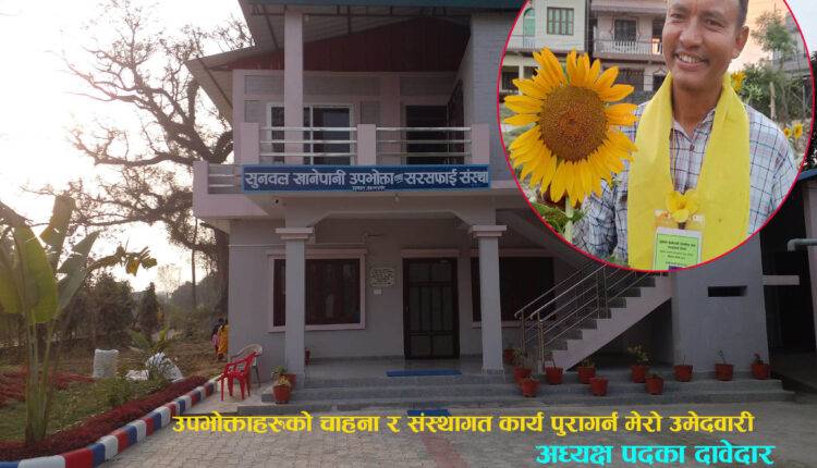 अहिले संघीय सरकारको लगानी र संघीय खानेपानी तथा ढल व्यवस्थापन आयोजना बुटवलको प्रत्यक्ष निर्देशनमा सुनवलमा नयाँ खानेपानी आयोजना संचालनमा छ जस्को कार्य सम्पन्न् गर्नु पर्ने दायित्व वर्तमान कार्यसमितिले केहि पु्रा गरेको छ तर बाँकी कामलाई समयमा सम्पन्न गर्नका लागि पनि अनुभवी नेतृत्वको खाँचो रहेकाले आफु र आफ्नोे टिम चुनावमा होमिएको अध्यक्ष पदका दावेदार बलबहादुर थापाले बताउनु भएको छ । उहाँले खानेपानी जस्तो पवित्र संस्थामा कुनै राजनिति गर्न नहुने र आफुले पनि नगरेको बताउदै आफुलाई नेकपा एमाले, नेकपा माले, राष्ट्रिय जनमोर्चा लगाएतका सबै दलनिकटका आम उपभोक्ताहरुले साथ र समर्थन गरेको समेत बताउनु भएको छ ।