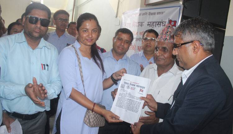 संसदमा पेश हुन लागेको शिक्षा विधेयक २०८० शिक्षक–कर्मचारीको पेशागत सुरक्षा र स्वाभिमानको खिलापमा रहेको भन्दै विभिन्न शिक्षकहरुका संघ संगठनहरुले ट्रेड युनियन अधिकारको माग गर्दै पालिकाहरुमा ज्ञापन पत्र पेश गरेका हुन् ।