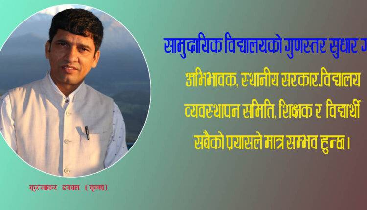 सामुदायिक विद्यालय किन राम्रो भएन भन्नेमा सबैको आ–आफ्नै बुझाइ छ ? सामुदायिक विद्यालयको गुणस्तर सुधार गर्न, अभिभावक, स्थानीय सरकार, विद्यालय व्यवस्थापन समिति, शिक्षक र विद्यार्थी सबैको प्रयासले मात्र सम्भव हुन्छ