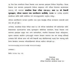 एस.ई.ई.को परिक्षा कोभिड–१९ का कारण अन्तिम समयमा आएर स्थगित भएको थियो तर पनि परीक्षा नहुने भएपछि विद्यालयले गरेको आन्तरिक मूल्यांकनको आधारमा नतिजा सार्वजनिक गरेको हो । अहिले ४ लाख ७२ हजार ७८ विद्यार्थीको परीक्षाफल प्रकाशित भएको राष्ट्रिय परीक्षा बोर्डले जानएको छ । विद्यार्थीहरूको मूल्यांकन प्रधानाध्यापक अध्यक्ष र सम्बन्धित कक्षा शिक्षकले विद्यार्थीको मूल्यांकन गरेर जिल्ला समन्वय ईकाई मार्फत बोर्डमा पठाएका थिए ।