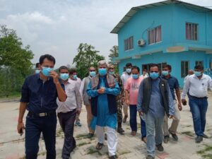 मन्त्री हृदयेश त्रिपाठीद्धारा सुनवलको कोभिड–१९ अस्थायी अस्पतालको निरिक्षण