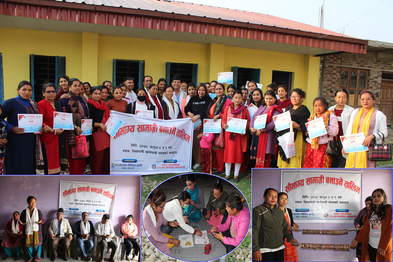 ४० बढी महिलाहरु सहभागि रहेको उक्त तालीममा उषा चौधरीले सहजीकरण गर्नु भएको थियो । चिसापानी खानेपानी तथा सरसफाई उपभोक्ता संस्थाको सभाहलमा भएको तालीम समापन कार्यक्रम बर्दघाट नगरपालिका वडा नम्वर २ की वडाध्यक्ष दया दर्लामीको अध्यक्षता तथा बर्दघाट नगरपालिकाका नगरप्रमुख धिरज शर्मा बस्यालको प्रमुख आतिथ्यता र गाउँले दर्पण मिडियाका कार्यकारी निर्देशक कृष्ण ढकालको संचालनमा सम्पन्न् भएको थियो । सो अवसरमा वडा सदस्य दधिकला पौडेल,बर्दघाट नगर खेलकुद् विकास समितिका अध्यक्ष सन्तोष श्रेष्ठ,समाज सेवी युवराज डुम्रे लगाएतको उपस्थिती रहेको थियो ।