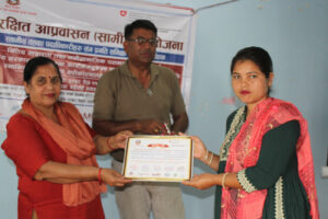 सामी परियोजनाका कक्षा सहभागिहरुलाई प्रमाण पत्र वितरण