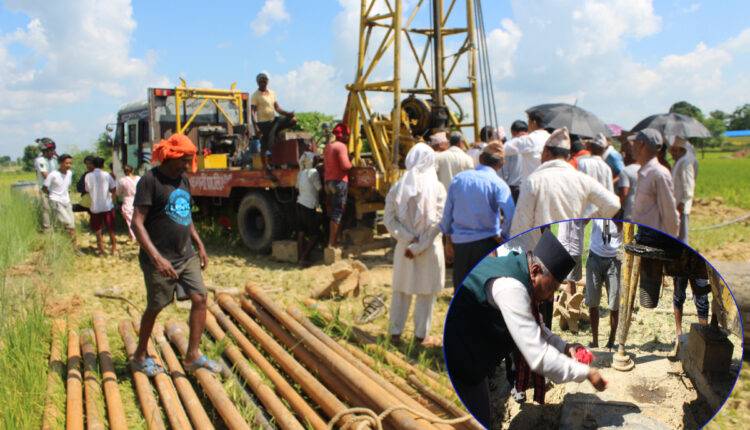 सिंचाईका लागि माग गरेको डिपबोरिङ्ग २२ वर्ष पछि धसाउन शुरु ।