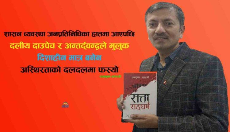 ०४६ सालको जनआन्दोलनले ३० बर्से पञ्चायती शासन ढालेर प्रजातन्त्र पुनःस्थापना भएपछि शासन व्यवस्था जनप्रतिनिधिका हातमा आएपछि दलीय दाउपेच र अन्तर्द्वन्द्वले मुलुक दिशाहीन मात्र बनेन अस्थिरताको दलदलमा फस्यो । ०४८ सालको निर्वाचनदेखि ०७८ सालसम्मको ३० वर्षको अवधिमा २८ सरकार बने । यिनै २८ सरकारको नालिबेली लाई समेटेर आफुले सत्ता सङ्घर्ष नामक पुस्तक प्रकाशन गरेको पत्रकार भण्डारीले बताउनु भएको छ ।