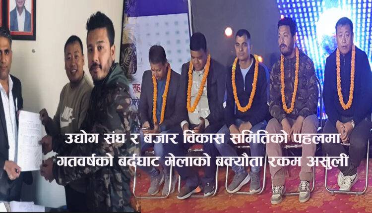 गतबर्ष बर्दघाटमा लगाएको औधोगिक ब्यापार मेला संचालनका क्रममा खर्च गरेका बर्दघाटका ब्यापारीहरुको रकम असुली गराउन बर्दघाट उद्योग वाणीज्य संघ र बर्दघाट बजार बिकास समिति सफल भएको छ ।