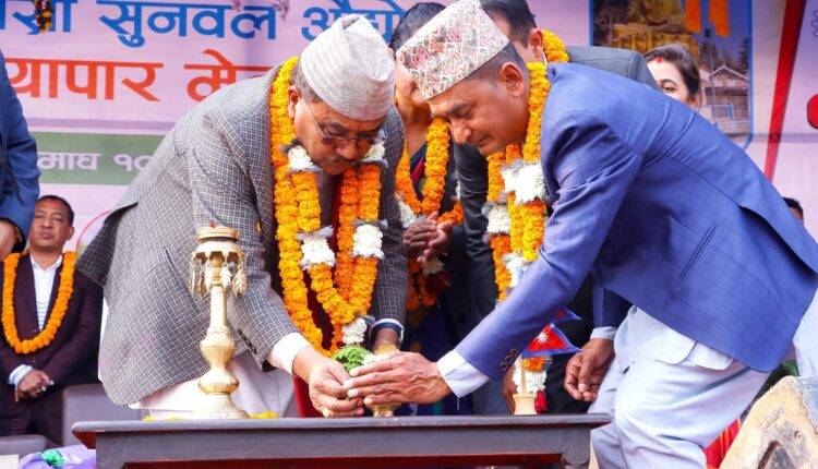 कृषि, पर्यटन र व्यापार राष्ट्र निर्माणको बलियो आधार भन्ने मुल नाराका साथ पश्चिम नवलपरासीको सुनवलमा मङ्गलबार देखी दोश्रो औद्योगिक व्यापार मेला २०७९ शुरु भएको छ । उद्योग बाणिज्य संघ सुनवलको आयोजनामा सुरु भएको मेलाको एक समारोहका विच कानून न्याय तथा संसदीय मामीला मन्त्री धुब्र बहादुर प्रधानले उद्घाटन गर्नुभएको छ । मेलाको समुद्घाटन गर्दै मन्त्री प्रधानले अहिलेको सरकार जनातालाई कसरी खुसी राख्ने भन्ने सोचका साथ अगाडी बढेको बताउनुभयो । उहाले यस क्षेत्रको समग्र विकासका निम्ति अन्य मन्त्रालयसंग समेत छलफल गरीरहेको बताउनुभयो । अहिले उद्योगी व्यवसायीहरु समेत धरासयी भएको अवस्थालाई मध्यनजर गर्दै उद्योगीहरुको समस्या समाधानका लागि मन्त्रीपरिषदमा छलफल भईरहेको मन्त्री प्रधानले बताउनुभयो ।