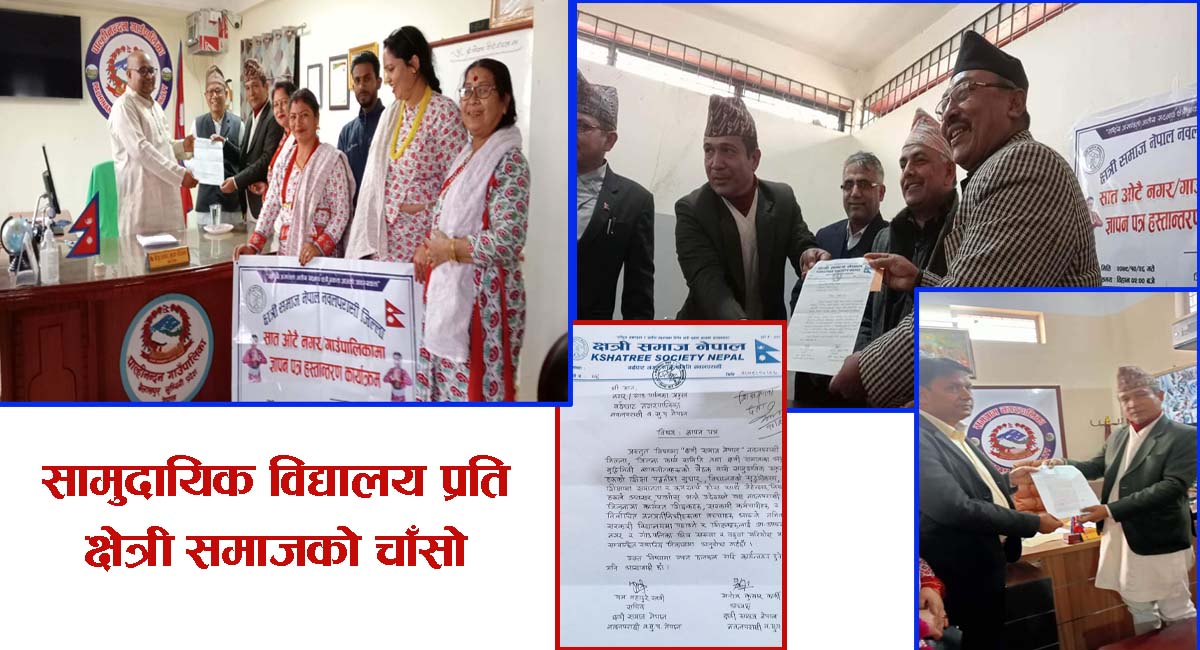 पालिकाका प्रमुख, उपप्रमुख र नगरका प्रमुख प्रशासकिय अधिकृत सहितको टोलीलाई ज्ञापनपत्र बुझाएको छ । समाजका जिल्ला अध्यक्ष मनोज कुमार कार्की र जिल्ला सचिव यम बहादुर खत्री द्धरा सयूक्त रुपमा हस्ताक्षरित ज्ञापनपत्रमा सामुदायिक स्कुलहरुको शिक्षा पद्धतीमा सुधार, विद्यालयको सुदृढिकरण, शिक्षामा समानता र कम खर्च होस साथै जेहेन्दार विद्यार्थीहरुले अवसर पाउनुपर्ने माग गरेको छ । साथै यस जिल्लामा कार्यरत शिक्षकहरु, सरकारी कर्मचारीहरु, जनप्रतिनिधिहरुका बच्चाहरु आफ्नो नजिकको सरकारी विद्यालयमा पढाउने र शिक्षकहरुलाई आ आफ्नो पालिका भित्र सरुवा, बढ्वा गरि शिक्षामा गुणस्तरियता कायम गर्न माग गरेको छ ।