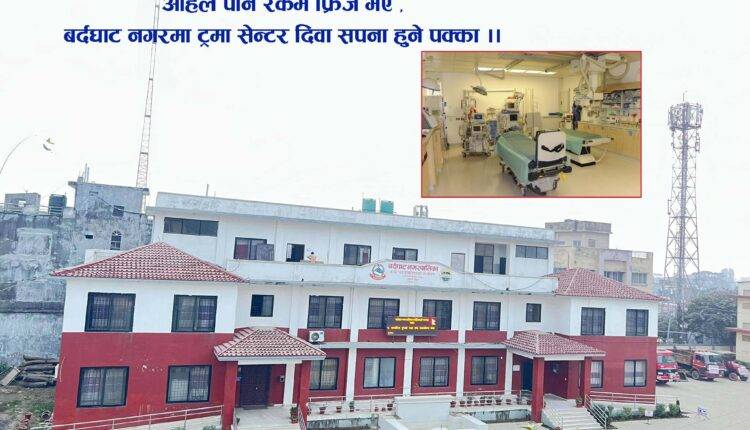 बर्दघाटमा नगरले जग्गा व्यस्थापन गर्न नसक्दा ट्रमा सेन्टरको टेन्डर हुन सकेको छैन । ट्रमा सेन्टर बन्नका लागी कम्तीमा १५ कठ्ठा जग्गा नगरको नाउमा हुने पर्ने छ ।