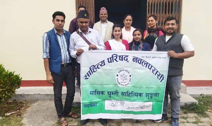 साहित्य परिषद्, नवलपरासीकाे ६१ औँ घुम्ती साहित्यिक शृङ्खला परिषद्का अध्यक्ष डा. श्यामप्रसाद न्याैपानेकाे अध्यक्षतामा सम्पन्न गरेकाे छ । सुनवल १३ बडेरामा अवस्थित माेतीलाल बहुमुखी क्याम्पसकाे सभाहलमा सम्पन्न साहित्यिक कार्यक्रममा भविश्वर पराजुली, एकनारायण तिमिल्सिना, शाेभा बस्याल, नैनादेवी बस्याल, मैना सुवेदी, राज एम. के , यामजित मल्ल, टीकादेवी न्याैपाने लगायत दर्जनभन्दा बढी स्रष्टाहरूले रचना वाचन गरेका थिए ।