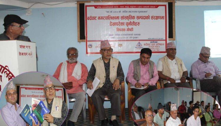 लोक वार्ता परिषद नेपालका सदस्य प्रध्यापक डा. धु्रब प्रसाद भट्टराईले बर्दघाट नगरपालिकाका सांस्कृतिक सम्पदाको संरक्षणमा देखिएका चुनौतीहरू बिषयमा कार्यपत्र प्रस्तुत गर्नु भएको कार्यक्रममा नवलपरासी साहित्य परिषदका अध्यक्ष्ँ डा. श्याम प्रसाद न्यौपाने, लगाएतले भनाई राख्नु भएको थियो ।