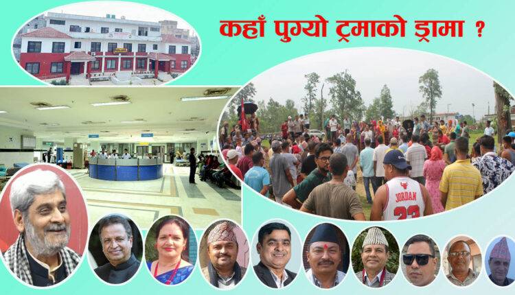 नेपालमा काठमाण्डौं बाहिर पहिलो पटक नवलपरासीको बर्दघाटमा ट्रमा सेन्टर निर्माण गर्ने भनेर २ बर्ष अघि बजेट भाषण सुनेर खुशिभएका बर्दघाट नगवासीहरु बजेट भएर पनि काम नगरेको देख्दा जनप्रतिनिधि,राजनितिक दल र कर्मचारीहरुको ट्रमाको ड्रमा सुनेर आजित भएका छन् ।