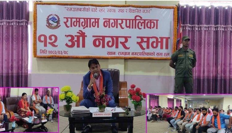 पश्चिम नवलपरासीको रामग्राम नगरपालिकाले आगामी आर्थिक वर्षका लागि एक अरब १७ करोड १८ लाख ८८ हजारको कूल बजेट सार्वजनिक गरेको छ। शुक्रबार सम्पन्न १२ओैं नगरसभाले आगामी आर्थिक वर्ष २०८०/०८१ का लागि उक्त बजेट पारित गरेको हो । कूल बजेटको ६४ प्रतिशत पूँजीगततर्फ र ३६ प्रतिशत चालुतर्फ विनियोजन गरिएको नगर प्रमुख धनपत यादवले जानकारी दिनुभयो ।