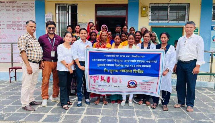 नगरपालिकाको स्वास्थ्य शाखाले निःशुल्क शिबिर नगरका १८ वटै वडालाई लक्षित गरी ६ वटा स्वास्थ्य चौकीमार्फत महिलाहरुलाई स्तन पाठेघरको मुख क्यान्सर तथा आङ खस्ने रोग सम्बन्धी निःशुल्क स्वास्थ्य शिबिर संचालन गरेको हो ।