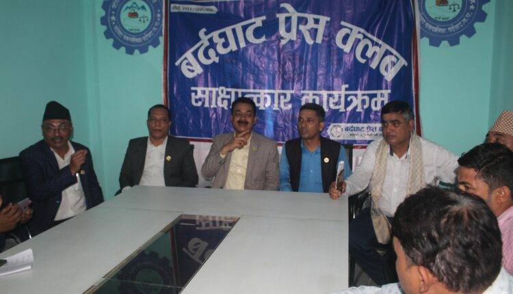 बर्दघाट प्रेस क्लबका अध्यक्ष कुस्माकर ढकाल (कृष्ण)को अध्यक्षता र सचिव प्रकाश खनालको संचालनमा भएको उक्त साक्षात्कार कार्यक्रममा संविद्यान सभा सदस्य विक्रम खनाल,प्रदेश सभा सदस्यद्धय विश्वप्रेम पाठक र खड्ग वस्नेत र बर्दघाट नगर प्रमुख शम्भुलाल श्रेष्ठको समेत उपस्थिती रहेको थियो ।