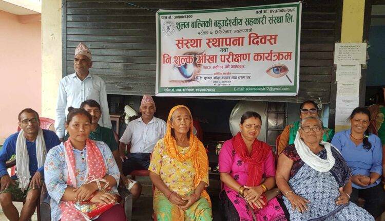 शुलभ बाल्मिकी बहुउद्देश्यीय सहकारी संस्था लि. बर्दघाट – ७ जिमिरेभार पश्चिम नवलपरासीको संस्था स्थापना दिवसको आयोजनामा तथा के. के. बुटवल आँखा उपचार तथा चश्मा घर बर्दघाट – ४ पश्चिम नवलपरासीको प्राविधिक सहयोगमा १ दिने निःशुल्क आँखा परीक्षण शिविर आईतवार जिमिरेभारमा सम्पन्न गरिएको छ ।