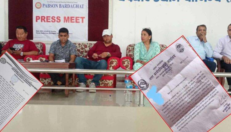 बर्दघाट नगरले  विधालयहरुलाई दिउँसोमा सञ्चालन गर्ने निर्णय कार्यान्वयन नगरेको पाईएकोहुदाँ  यथाशिघ्र नगरको निर्णय कार्यान्वयन गर्न  निर्देशन गरेको पत्र काटेपछि आज बर्दघाट प्याब्सनले पत्रकार सम्मेलनगरी नगरको निर्णय उल्ङघन गर्ने र संस्था खारेजी प्रक्रियामा अघिढे प्यापब्सन अदालत जाने ताएको छ ।