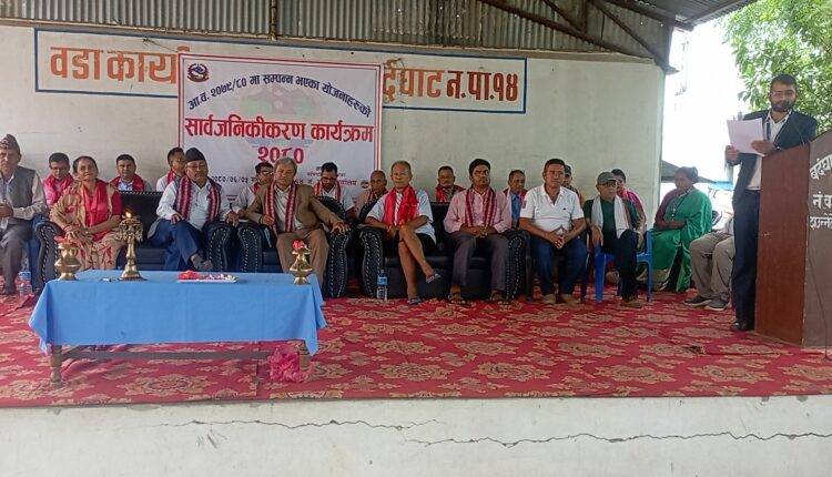वडा सदस्य सुजना बिकको स्वागत मन्तव्य रहेको कार्यक्रमको संचालन वडा सचीव टङ्कनाथ भण्डारीले गर्नु भएको थियो भने कार्यक्रममा राजनीतिक दलका प्रतिनिधि,विभिन्न संघसस्थाहरुका प्रतिनिधि तथा स्थानिय वडाबासिहरुको उपस्थिति रहेको थियो । झन्डै ९९ प्रतिशत योजनाहरु सम्पन्न भएको वडाले जनाएको छ।आर्थिक बर्ष ७९र८० मा वडा नम्बर १४ लाई ७३ लाख २६ हजार बजेट बिनियोजन भएको थियो ।