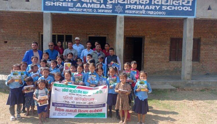 आर्थिक र ब्यवसायिक मात्र नभै सामाजिक क्षेत्रमा पनि सहकार्य र समन्वय गरी अघि बढ्ने उद्धेश्य अनुरुप अघि बढेको सबैको बहुउद्धेश्यीय सहकारी संस्थाको निर्णय अनुसार यसपटक आम्वास प्राथमिक विद्यालय,बर्दघाट–२, आम्वासका विद्यार्थीहरुलाई शैक्षिक सामाग्रीहरु वितरण गरीएको संस्थाका अध्यक्ष्ँ पौडेलले जानकारी गराउनु भएको छ ।