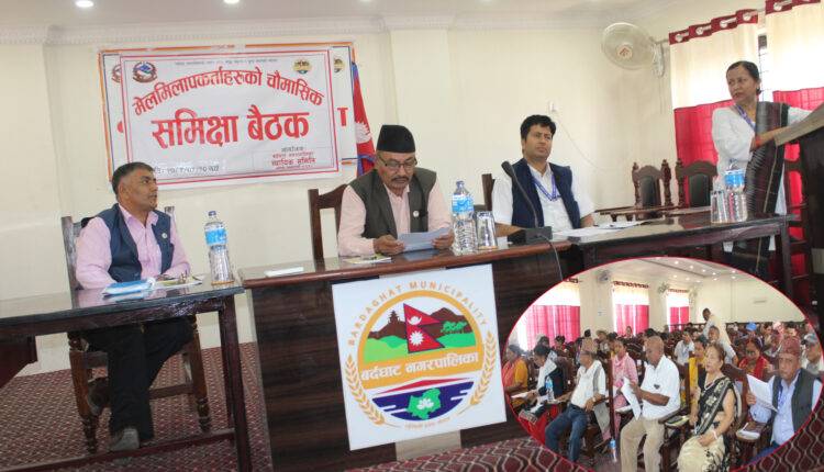 बर्दघाट ३ का मेलमिलापकर्ता राम प्रसाद न्यौपानेले उजुरी वडामा नै दर्ता हुने अवस्था मिलाउनु पर्ने बताउनु भयो । ” अहिलेको समिक्षा चौथो रे ! पहिलो, दोस्रो र तेस्रो मासिक कता गयो । कहिले कसैले पनि खबर गरेन किन ?” न्यौपानेले प्रश्न गर्नु भयो ।