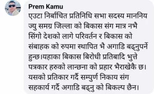 पछिल्लो समय पतिनिधी सभा सदस्य बिनोद चौधरीको निकट मानिने कामु खुलेयाम रुपमा आलोचक मात्र होइन पत्रकारको सातो खान खोज्ने हैकमबादी प्रवृत्ती उनमा देखिन थालेको छ ।सामान्य आलोचना समेत सहन नसक्ने कामु पदिय हैसियत नै बिर्सेर तल्लो तहमा झरेर अरुलाई दोषारोपण गर्न पछि परेका छैनन ।जुन कुरा उनले सामाजिक सन्जालमा व्यक्त गर्ने अभिव्यक्ति बाट प्रष्ट देखिन्छ ।