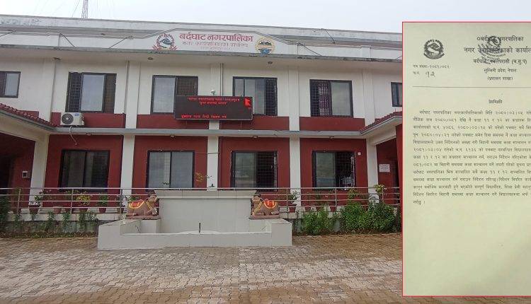 बर्दघाट नगरपालिकाले शैक्षिक सत्र २०८०/०८१ देखि कक्षा ११ र १२ का कक्षाहरु दिवा समयमा सञ्चालन गर्नका लागि नगरका सबै विद्यालयहरुलाई निर्देशन गरेको छ । गतशैक्षिक शत्रमा नै कक्षा ११ र १२ का कक्षाहरु दिवा समयमा सञ्चालन गर्न आग्रह गरेको बर्दघाट नगरले यस शैक्षिक शत्रमा भने निर्देशन कार्यान्वयन नगर्ने विद्यालयलाई कानुनि कार्वाहि गर्ने लिखित पत्र दिएको नगर प्रमुख शम्भुलाल श्रेष्ठले बताउनु भएको छ ।