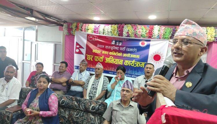 नेकपा एमाले बर्दघाट नगर कमिटिका अध्यक्ष केशव बहादुर खत्री क्षेत्रीको अध्यक्षता र सचिव शोभाकान्त कोईरालाको सञ्चालनमा भएको घरफर्क अभियान कार्यक्रममा पार्टीमा समाहित हुनुभएका रुक्मागत ज्ञवाली,प्रदेश कमिटिका सदस्य एकदेव पाण्डे, जिल्ला सल्लाहकार आर.सी. पराजुली,जिल्ला अध्यक्ष दिपेन्द्र कुमार अधिकारी,केन्द्रिय सदस्य बिमला अर्याल लगाएतले आ–आफ्ना भनाईहरु राख्नु भएको थियो ।
