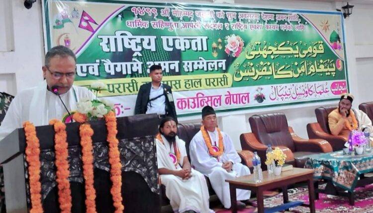 १४९९ औं मोहम्मद जयन्तीको अवसर पारेर हिन्दु, ईस्लाम, बौद्ध, क्रिस्चियन लगायतका धर्मगुरु सहभागी सम्मेलनमा देशभरबाट प्रतिनिधि सहभागी भएको आयोजक ओलमा काउन्सिल नेपालका अध्यक्ष सैयद गुलाम हुसैन मियाले जानकारी दिनुभयो ।