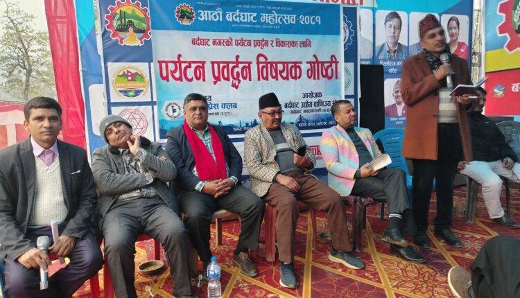 बर्दघाट नगरको बिकासका लागि पहिले पर्यटन क्षेत्रकाे बिकास गर्नु पर्ने सरोकारवालाहरुले जाेड दिएका छन । बर्दघाट उद्योग बाणिज्य संघको आयोजना र बर्दघाट प्रेस कल्वको समन्वयमा बर्दघाटमा पहिलो पटक भएको पर्यटन प्रवर्द्धन बिषयक कार्यक्रममा बोल्दै सरोकारवालाहरुले नगरको बिकासमा पर्यटन क्षेत्रलाई जोड दिनु पर्ने आवस्यकता औल्याएका थिए ।