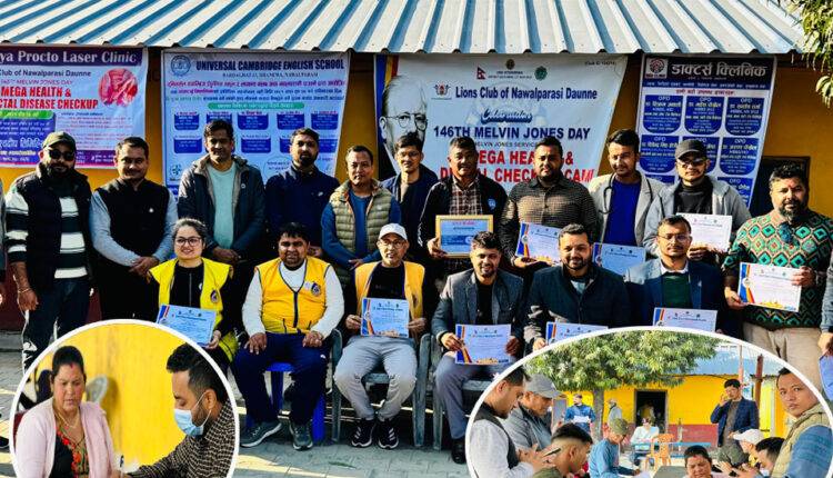 लायन्स क्लव अफ नवलपरासी दाउन्नेको आयोजनामा शनिवार निःशुल्क स्वास्थ्य शिविर सम्पन्न भएको छ । बर्दघाट नगरपालिका वडा नं १३ स्थित यूनिभर्सल क्याम्ब्रिज ईङलिस स्कूलमा भएको निःशुल्क स्वास्थ्य शिविरमा १ सय ७ जना सेवाग्राहीहरुले सेवा लिएको लायन्स क्लव अफ नवलपरासी दाउन्नेका सचिव विष्णुबहादुर वस्नेतले जानकारी दिनु भएको छ ।