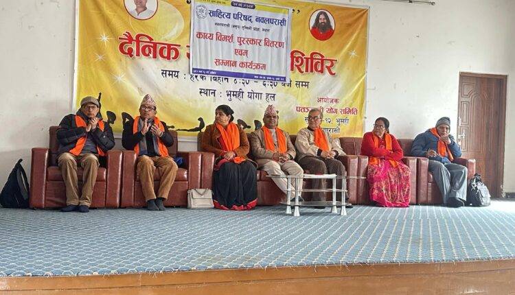 साहित्य परिषद्, नवलपरासीको आयोजनामा काव्य विमर्श, पुरस्कार समर्पण एवम् स्रष्टा सम्मान कार्यक्रम शनिवार भुमहिमा सम्पन्न भएको छ । साहित्यिक कार्यक्रमलाई सम्वोधन गर्दै नगरप्रमुख बिमला अर्यालले नगरको विकासका लागि सुनवल नगरपालिकाले सुनवल वाङ्मय प्रतिष्ठानको अवधारणा लिएको बताउनु भएको थियो ।