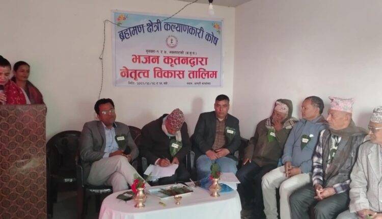 ब्रहामण क्षेत्री कल्याणकारी कोष, भजन समुह सुनवल –१ र ४ को आयोजनामा नेतृत्व विकास तालिम सञ्चालन भएको छ। समितिका अध्यक्ष हेमलाल पराजुलीको अध्यक्षता र प्रध्यापक एवं समाज सेवी भरत भुषालको प्रमुख आतिथ्यतामा समुद्घाटन भएको तालीममा ब्रहामण क्षेत्री कल्याणकारी कोष, भजन समुहका ब्यक्तित्वहरुको सहभागिता रहेको छ ।