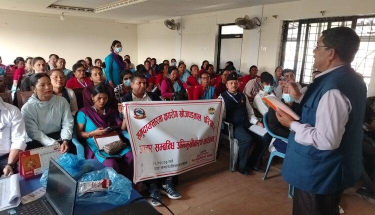 बर्दघाट नगरको समुदाय स्तरमा क्षयरोग खोजपड्ताल अभियानको शुरु गर्नुपूर्व आज नगरका सबै स्वास्थ्य संस्थाका स्वास्थ्यकर्मी र महिला स्वास्थ्य स्वयम सेवीकाहरुलाई अभियानका वारेमा पूर्ण प्रशिक्षीत गर्ने कार्य सम्पन्न गरि सकेको छ ।