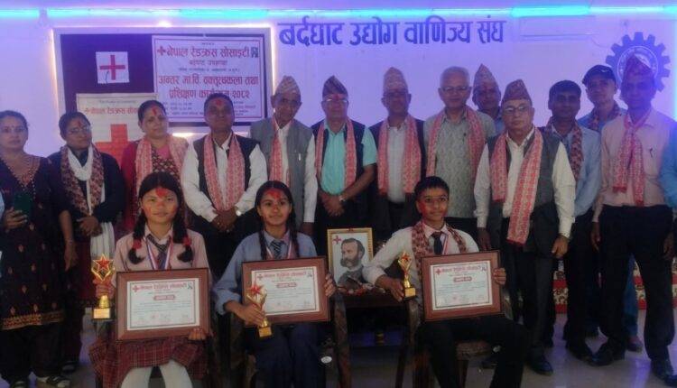नेपाल रेडक्रश सोसाईटी बर्दघाट उपशाखाका जु.रे.स. संयोजक डि.बि. अधिकारीको अध्यक्षता र नेपाल रेडक्रश सोसाईटी जिल्ला शाखा नवलपरासीका महामन्त्री ऋषिराम सुवेदीको प्रमुख आतिथ्यतामा भएको अन्तर मा.बि.वतृत्वकला प्रतियोगिता तथा प्रशिक्षण कार्यक्रममा बर्दघाट उपशाखाका सभापति नारायण अधिकारी,जिल्ला सदस्य दिर्घप्रसाद घिमिरे,बर्दघाट उद्योग वाणीज्य संघका अध्यक्ष लेखनाथ न्यौपाने,नेपाल रेडक्रश सोसाईटी जिल्ला शाखाका प्रशिक्षक संगम पाण्डे लगाएतले आ–आफ्नो धारणा राख्नु भएको थियो ।