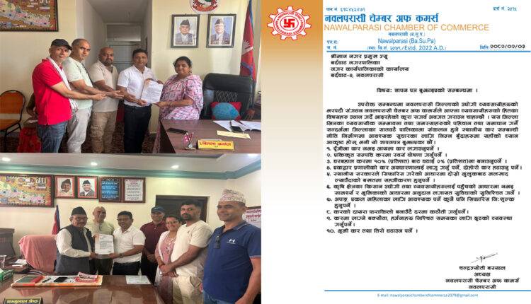 नवलपरासी चेम्वर अफ कमर्सले सबै स्थानिय तहलाई ज्ञापन पत्र बुझायो