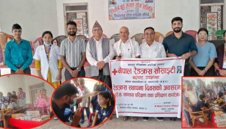 नेपाल रेडक्रस सोसाइटी बर्दघाट उपशाखाले आफ्नो स्थापान पदिवसको अवसरमा जुनियर रेडक्रस सर्कलका बिद्यार्थीहरुको स्वास्थ्य परिक्षण तथा प्रशिक्षण गर्ने कार्य सम्पन्न गरेको छ । बर्दघाट–शिवालय मन्दिरको सभाहलमा आयोजना गरीएको उक्त कार्यक्रममा १३ विद्यालयका विद्यार्थी तथा शिक्षक नायक गरी १ सय ६० बढीको सहभागिता रहेको बर्दघाट उपशाखाका सचिव धनञ्जय पौडेलले जानकारी दिनुभयो ।