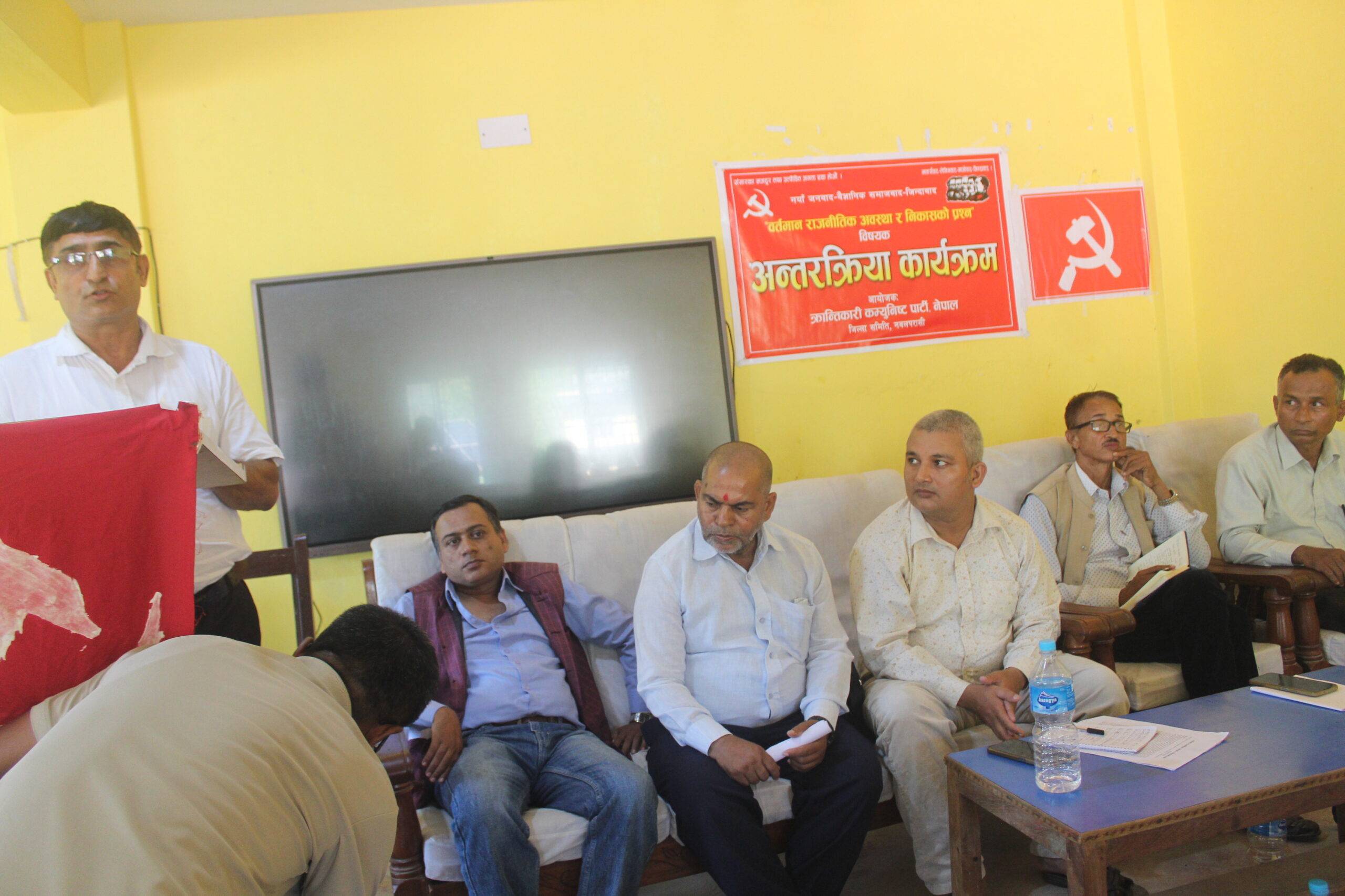 जिल्लामा क्रियाशिल राजनैतिक दल, मानव अधिकारकमी, कानुन ब्यवसायी, नीजि क्षेत्र,सामाजिक संघसंस्था बीच पार्टीले ‘वर्तमान राजनीतिक अवस्था र निकासको प्रश्न’ बिषयक अन्तरक्रिया गरेको सो पार्टीले जनाएको छ ।
