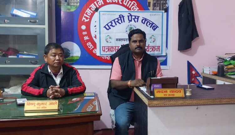 वडा कार्यालयले नागरिकलाई गुनासो रहित छिटो छरितो सेवा प्रदान गर्दै आएको वडा सचिव विष्णु कुमार आलेले बताउनुभयो । वडामा सिफारिस तथा सम्पत्ति कर लगायतका सेवा अनलाइन प्रणालीमार्फत सहज रूपमा उपलब्ध गराउँदै आएको उहाँले उल्लेख गर्नुभयो । परासी प्रेस क्लवका अध्यक्ष मोहन पौडेलको अध्यक्षता, सल्लाहकार टीकाराम गैरेको स्वागत तथा सचिव सुरेश यादवको सञ्चालनमा कार्यक्रम भएको थियो ।