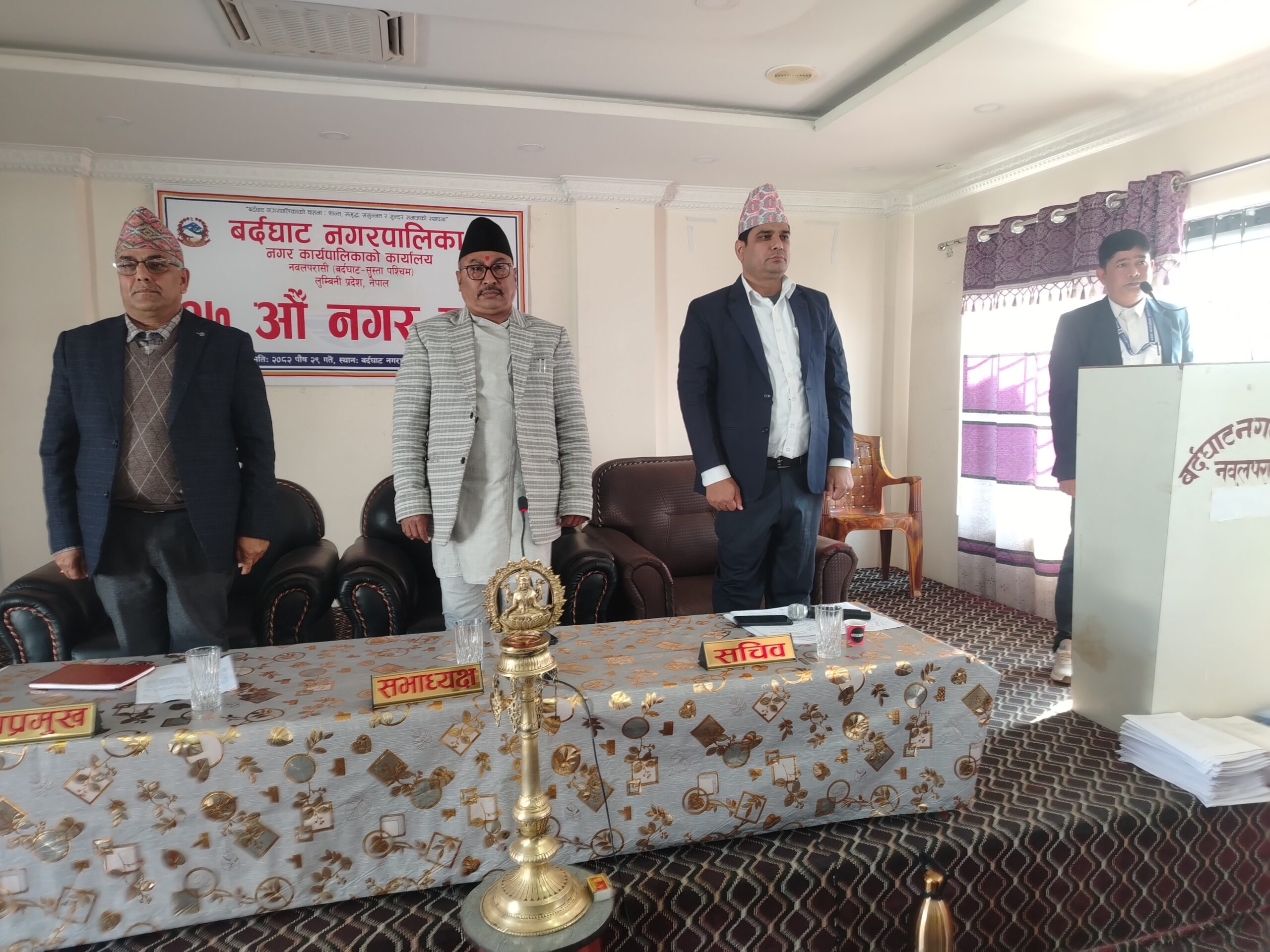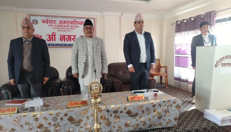 बर्दघाट नगरपालिकाको १७औँ हिउँदे नगरसभा सोमबारबाट सुरु भएको छ। नगर सभामा आर्थिक बर्ष २०८२ काे पहिलाे संसाेधन वमाेजिमकाे संसाेधित वजेट र आय ब्यय पेस गरीएकाे थियाे ।