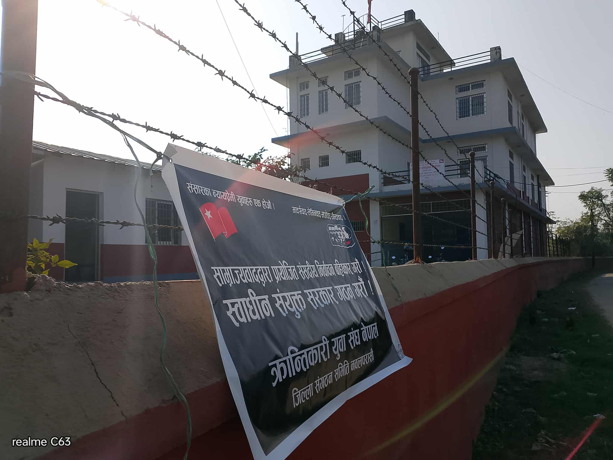 क्रान्तिकारी युवा संघ नेपाल नवलपरासीले सदरमुकाम परासीमा रहेको मुख्य निर्वाचन अधिकृतको कार्यालयमा कालो ब्यानर टागेर बिरोध जनाएको छ ।साम्राज्यवादद्वारा प्रायोजित संसदीय निर्वाचनले राजनैतिक निकास दिन नसक्ने बताउदै संघले स्वाधीन संयुक्त सरकारको माग गरेको हो ।क्रान्तिकारी कम्युनिस्ट पार्टी नेपाल निकट क्रान्तिकारी युवा संघले भ्रष्ट संसदीय ब्यवस्था अन्तरगत हुने निर्वाचनले युवा एवं जनताको अधिकार् सुनिश्चित नहुने प्रष्ट पारेको छ ।