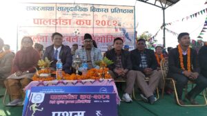 सगरमाथा सामुदायिक विकास प्रतिष्ठान बर्दघाट–५ पालडाँडा अध्यक्ष गंगा बहादुर क्षेत्रीको अध्यक्षता र शिव प्रसाद शर्माको सञ्चालन रहेको फुटबल प्रतियोगिताको समापन समारोहमा बर्दघाट नगर प्रमुख शम्भुलाल श्रेष्ठ प्रमुख अतिथिका रुपमा रहनु भएको थियो ।