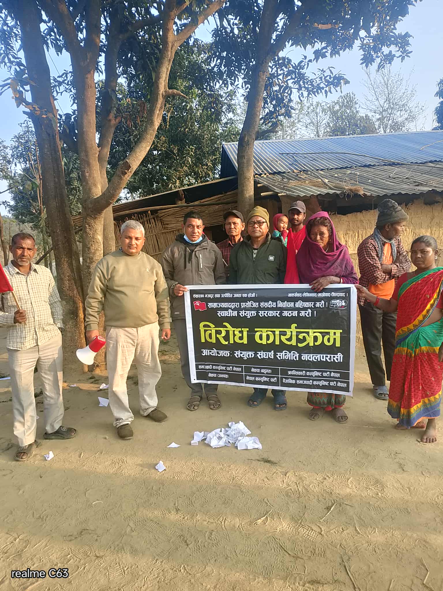 सो अवसरमा क्रान्तिकारी कम्युनिस्ट पार्टी नेपालका बैकल्पिक केन्द्रीय सदस्य एवं सेक्रेटरी पाण्डेयले समितिमा आबद्व चार दल सहित ९ वटा दल र समुह निर्वाचनको पक्षमा रहेको बताउदै पटक पटक सुकुम्बासी भुमिहीनहरुलाई झुक्याउने संसदबादी भोट होइन चोट दिनुपर्ने औल्याए । उनले साम्राज्यवादद्वारा प्रायोजित निर्वाचनले नयाँ दलाल उत्पादन गर्ने र उक्त दलालबाट रास्ट्रघाती एसपीपी सम्झौता संसदबाटै पास गर्ने भएकोले निर्वाचनको औचित्य नभएको बताए । गाउँमा दलालहरु होशियार,साम्राज्यवादद्वारा प्रायोजित निर्वाचनको सशक्त बहिष्कार गरौ , भुमिहीन सुकुम्बासी एकता जिन्दावाद,कठपुतली सरकार खारेज गर, स्वाधीन संयुक्त सरकार गठन गर , जस्ता चर्का नाराबाजी सहित संघर्ष समितिका स्थानीयले चासोपुर्बक लिएका थिए ।