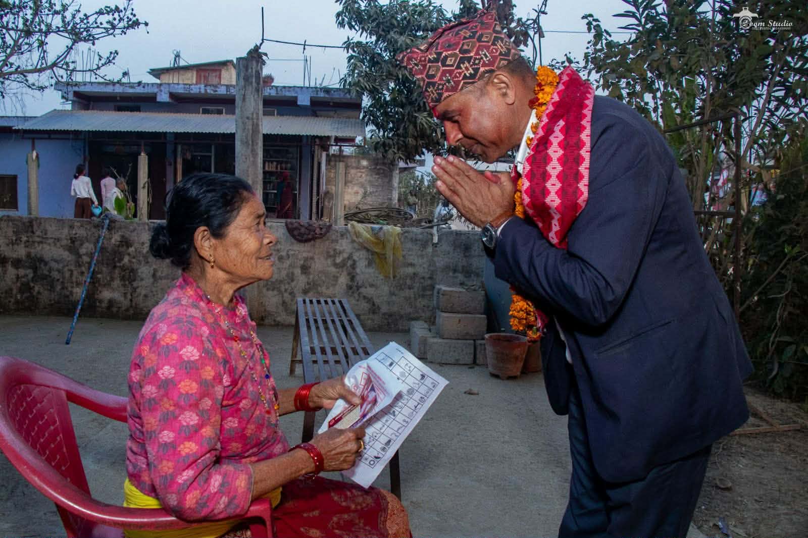 पश्चिम नवलपरासी जिल्लाको निर्वाचन क्ष्ँेत्र नं. १ बाट प्रतिनिधिसभा सदस्य निर्वाचनमा नेकपा एमालेको तर्फबाट उमेदवारी दिनुभएका रामप्रसाद पाण्डे यतिवेला चुनावी अभियानमा ब्यस्त रहनु भएको छ । उम्मेदवार रामप्रसाद पाण्डे मतदाताको घरदैलोमा पुगेर मत माग्ने क्रममा किसानले भोग्नु परेका समस्या, देखि भौतिक विकासका कामहरु आफुले पुरा गर्ने प्रतिवद्धता जाहेरगर्दै सुर्य चिन्हमा भोट हाल्न आग्रह गर्नु भएको छ ।
