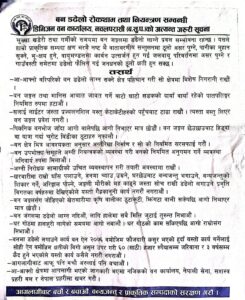 सुख्खा खडेरी तथा गर्मी समयमा वन जंगलमा डढेलो लाग्ने प्रवल संभावना भएकाले प्राकृतिक सम्पदाको संरक्षण गरी वातावरणीय सन्तुलन कायम गर्न अहिले सामुदायिक वनहरुले गरेका कामहरु प्रसंसनिय रहेको भन्दै अझ प्रभावकारी बनाउन बर्दघाट– सरावल सवडिभिजन कार्यालय अन्र्तगतका सबै सामुदायिक वन समुहहरुलाई कार्यक्रममा आग्रह गरीएको थियो ।