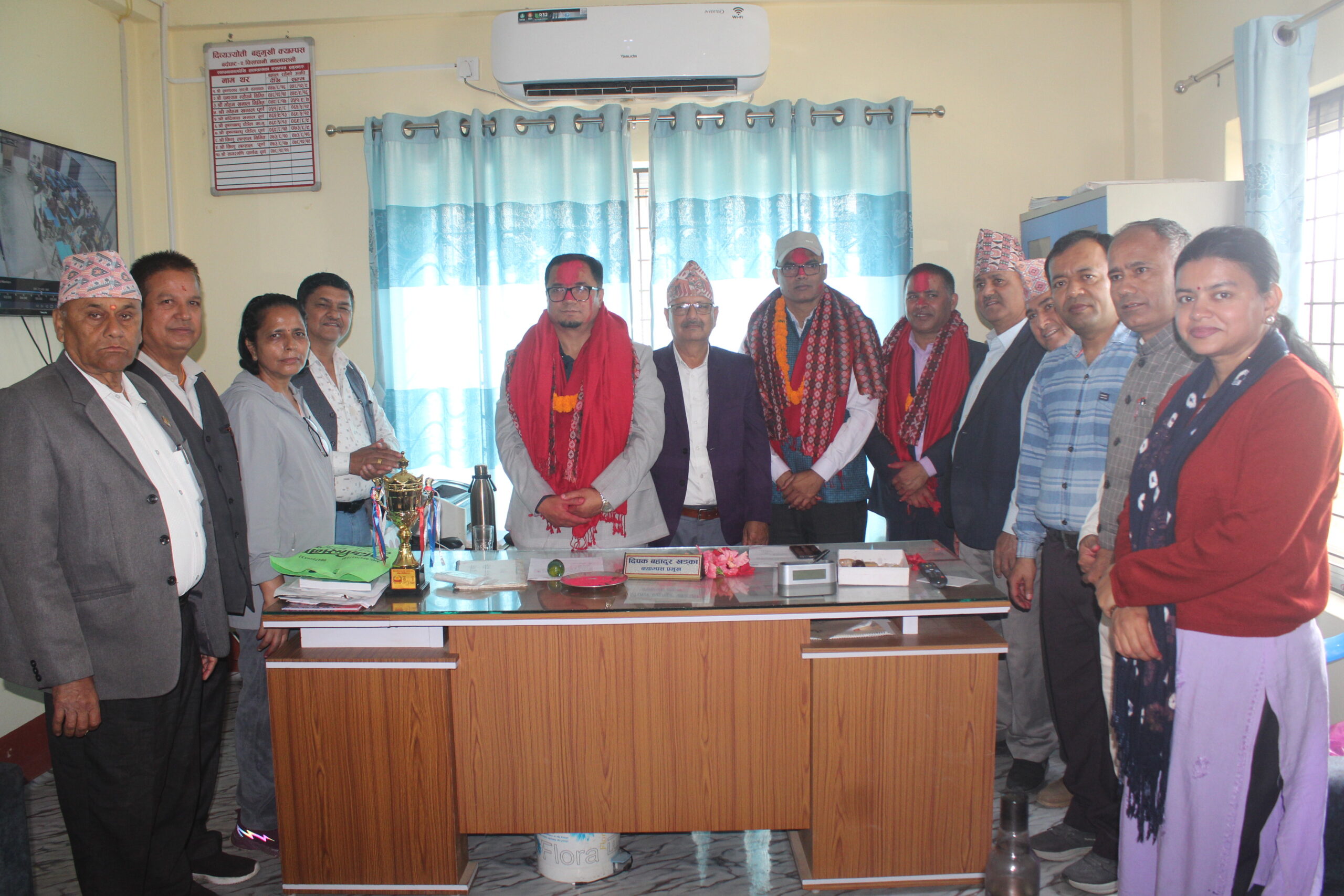 बर्दघाट नगरपालिका वडा नं. २,चिसापानीमा रहेको दिब्यज्योती बहुमुखी क्याम्पसमा आठौ क्याम्पस प्रमुखका रुपमा दिपक बहादुर खड्का नियुक्त हुनुभएको छ । नव नियुक्त क्याम्पस प्रमुख खड्कालाई आज एक कार्यक्रमका विच सहकर्मी प्रध्यापकहरुले सम्मान सहित बधाई तथा शुभकामना प्रदान गर्नु भएको थियो भने निर्वतमान हुनु भएका सागरमणी पाण्डेलाई स्वर्णिम कार्यकाल पूरा गरेको भन्दै धन्यवाद ज्ञापन सहित बधाइ तथा सम्मान प्रदान गरेका थिए ।