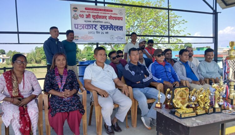 १० औं संस्करणको सुर्यनगर गोल्डकप आज अर्थात चैत्र २७ गतेबाट सुरु हुदै छ । जिल्लाकै सर्वाधिक पुरस्कार राशिको गोल्डकपको सम्पुर्ण तयारी पूरा भएको आयोजकले बिहिवार पत्रकार सम्मेलन मार्फत जानकारी दिएको थियो ।